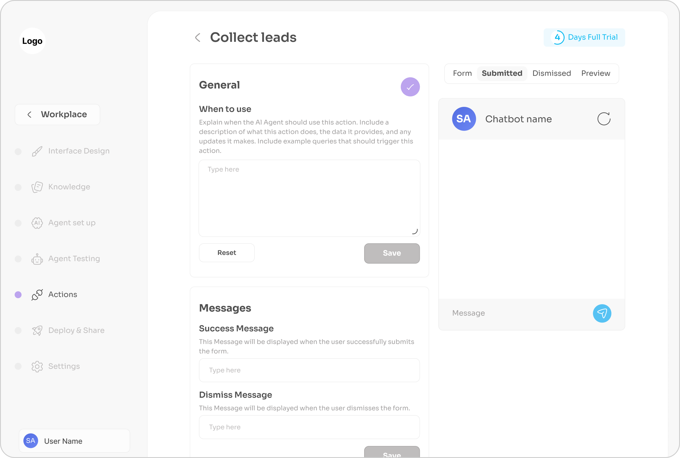 A platform allows users to create custom chatbots trained on their own data (documents, URLs, etc.) and embed them on websites or use them for internal automation.